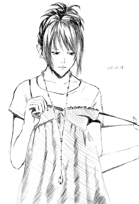 少なくとも資格取ろうとか考えてるやつ誰かおらんのかな…? あぁ…俺もしかしたら次のイベント参加しないかもです;;; デジタルの絵も好きですが、やはり自分はアナログ派なので Pixivとかでもアナログで描かれた絵は特に好んで見たりします。 ただ最近はデジタルが多いですよね… 若干寂しいです。 まぁデータとしてアップするのに、アナログは不利なので仕方ないんですけどね。 どこかでも話したかもしれませんが、 デジタルってやろうと思えばどこまでも描けるしこだわれるじゃないですか? で、加減することが苦手な自分なんかがデジタルなんて使うと どこまでもこだわってしまって切り時がわからなくなっちゃうんですよね。 後ろの背景なら空だったり雲、自然物、人工物。 人物なら肌の細かい色の変化とか髪の毛一本一本とか。 自分だけかもしれないけど、とにかくどこまでも出来るんですよ。 勿論時間はかなりかかりますけどね。 だから限界のわかりやすいアナログのほうがいいんですよ;; で、アナログでデジタルに劣らないためにも ついつい前々から欲しかった小畑健の画集買っちゃいました。 これコピックのメイキング載ってるので目をつけていたんですよね。 で、勢いで買っちゃいました。なかなか高かったです; これを参考にまた頑張っていきたいと思います。 最近の絵もあげておきますね。 ダメだこりゃ 完全にスランプだ 紙に残るのは消した跡ばっか 女の子が描けない~~~ ぐぬあぁぁーーーー もう嫌だぁ~ 誰か女の子の描き方教えてくれ~~ 久々に自分が昔描いた絵を見返したのですが、 今と昔を比べてやっぱり違うなぁと思いました。 勿論、技術面は向上していて当たり前なのですが、 そうではなく 昔は純粋に絵を描くのを楽しんでるなと思いました。 なんていうか、明らか昔描いた絵の方が生き生きしてるんですよね… 最近は周りの評価などを気にして構図をどうするかとか 無駄に色々考えていたせいもあって 純粋に描くことを楽しめていなかった気がします。 (世間の目とか気にしちゃうんです。) 前の方がよかったとか、よくないでしょw それはさすがにまずいな、ということで 昔の気持を思い出すべく構図なんてお構いなく 自分の好きなものを好きなように描きまくったり 初心に返って模写とかしてみる事にしました。 昔はよく模写してたなぁ… 特に小畑健さんのヒカ碁とかデスノ 貞本義行さんのエヴァをよく描いてましたよ。 懐かしいです。 で、もしゃってみました。 すごく楽しいです。 キャラどうするとか服どうしよとか構図どうしよとか 一切考えずに描けるのはすごく楽しいです。 いや、まぁ考えるのが楽しいんじゃんって人もいるでしょうけどねw 久々に数時間シャーペンでガシガシ描いてましたw これ続けてたらベタ塗るところとかおのずとわかってきて上達しそうな感じがします。 (ペン入れ時のベタ苦手なんです。) 何をするにも楽しむことを忘れちゃいけませんよね。 |